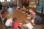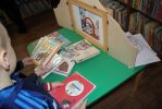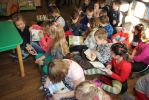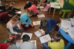 Na spotkanie z książkami o kotach zaproszone zostały dzieci z Przedszkola Miejskiego w Piszu. Dzieci chętnie rozmawiały o swoich puszystych pupilach, ich przyzwyczajeniach i nawykach w otoczeniu wystawy fotografii i książek z kotami w roli głównej. Słuchały opowieści w Teatrzyku Kamishibai, oglądały książeczki i kolorowały bohaterów spotkania. Powstało wiele zaskakujących kocich portretów. Na zakończenie wizyty w bibliotece wypożyczyły bajki i wierszyki o kotkach.