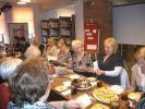 Z okazji Tłustego Czwartku przy pączkach i innych słodkościach czytelnicy dyskutowali o książce "Podróż na sto stóp" Richarda C. Moraisa". Powieść Moraisa skonstruowana jest niczym pamiętnik pisany z perspektywy czasu przez głównego bohatera - Hassana, chłopca o ogromnym talencie kulinarnym i smaku absolutnym. Chociaż kocha swoją rodzimą kuchnię, to jest bardzo ciekawy innych smaków, technik kulinarnych oraz wszelkiej wiedzy z tym związanej. W niedługim czasie to właśnie kuchnia francuska zajmuje szczególne miejsce w jego sercu i Madame Mallory - szefowa sąsiadującej restauracji, która odegrała kluczową rolę w życiu młodego kucharza. Styl pisarz niezwykle pobudza wyobraźnię sugestywnością barw, smaków kuchni indyjskiej i francuskiej. Szczególnie wędrówka z głównymi bohaterami po różnych krajach, miastach, targowisku oraz poprzez różne etapy życia głównego bohatera, który staje się z utalentowanego, acz pogardzanego imigranta - właścicielem i szefem najlepszej trzygwiazdkowej restauracji w sercu Paryża. Czytelnikom książka podobała się i polecają ją miłośnikom kuchni.